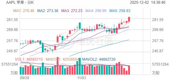 期权方面,苹果昨日成交量排名前三的合约都是CALL,此外,一张本周五(12月5日)到期的认购合约,行权价达290美元。