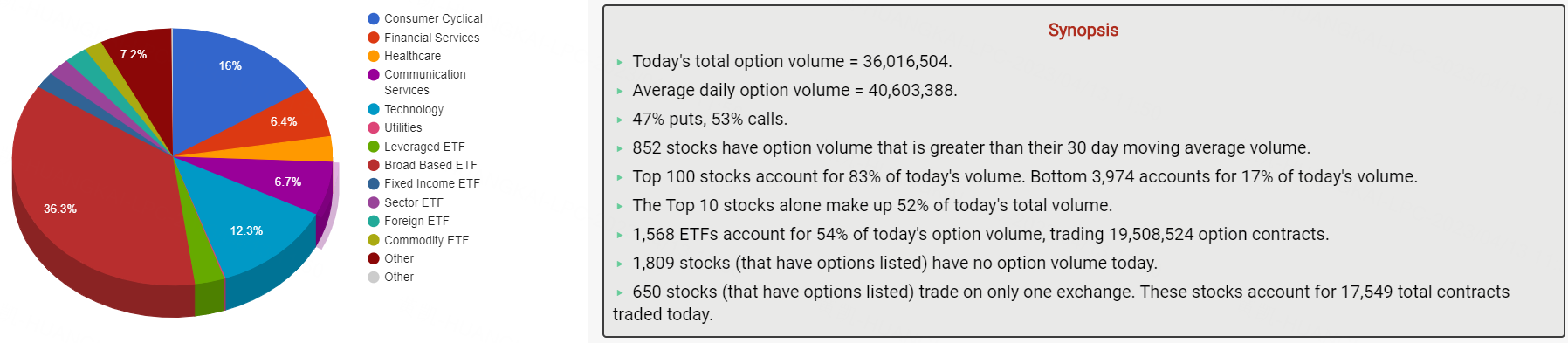 周三,期权市场总成交量达36,016,504张合约,其中,看涨期权占比53%。
