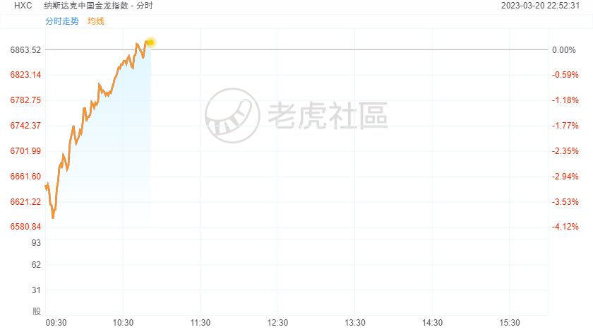 3月20日,纳斯达克中国金龙指数转涨,盘初一度跌约4%。成分股中,