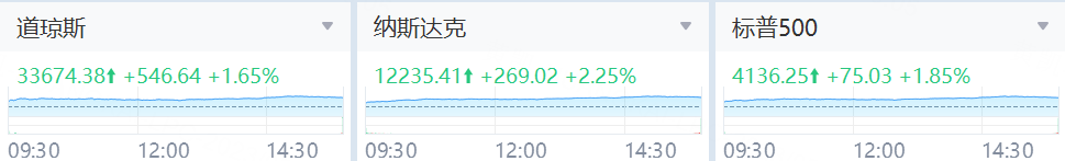美东时间5月5日,经历愁云惨淡的四日连跌后,美股大盘终于在5月首周收官日迎来一些好消息:就业增长强韧、苹果业绩向好,而且,此前严重拖累大盘的地区银行股探底回升,释放了最近抛售过度的迹象。纳指更是凭借周五大反弹戏剧性翻盘,首周最终转为累计上涨、实现开门红。截至收盘,道指涨546.64点,涨幅为1.65%,报33674.38点;纳指涨269.01点,涨幅为2.25%,报12235.41点;标普500指数涨75.03点,涨幅为1.85%,报4136.25点。