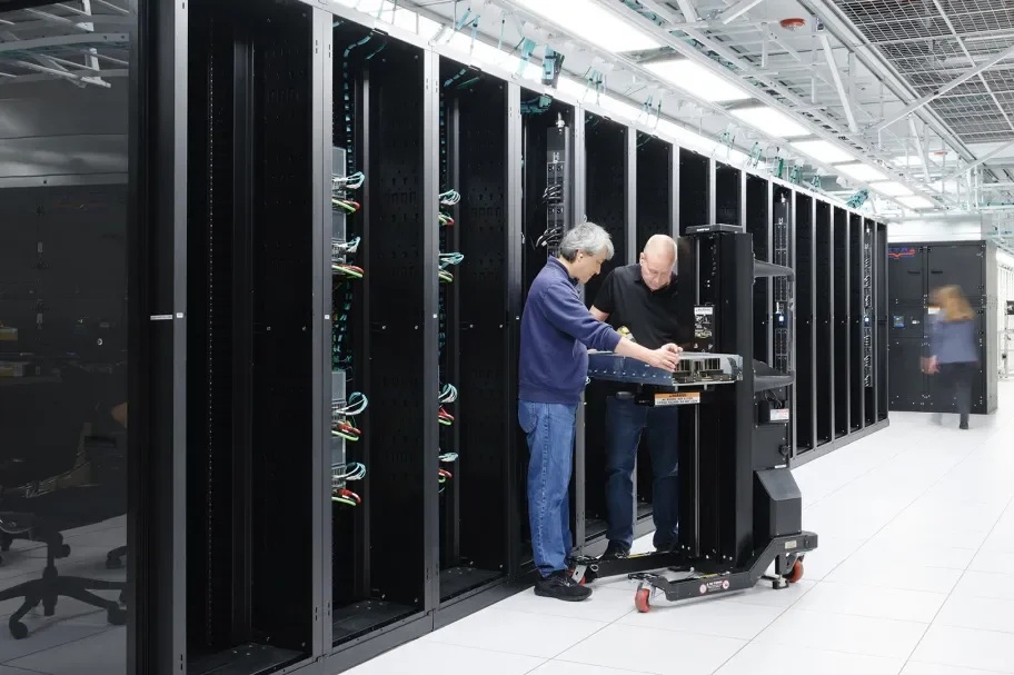 芯片之上是基础设施层。这包括土地、供电、冷却系统、建筑工程、网络通信,以及将成千上万处理器编排到一台机器的系统。这些系统就是 AI 工厂。它们的设计目的并非存储信息,而是制造智能。