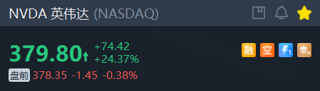 英伟达跌0.38%,昨日暴涨超24%,公司接近成为历史上第一家市值达到万亿美元的芯片公司。