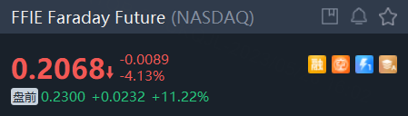 法拉第未来盘前涨超11%,其宣布FF 91成功通过FMVSS碰撞测试,第一阶段交付计划于美国时间5月31日开始。