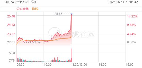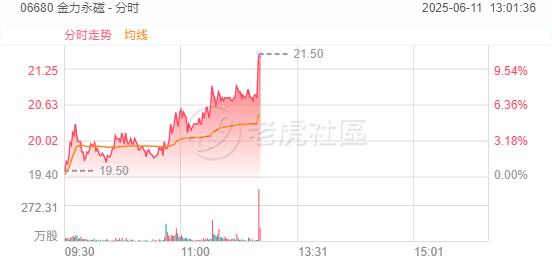 金力永磁A+H股午后强势拉升,双双两位数大涨。