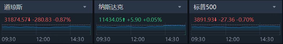美东时间周三,美股市场低开高走,对银行业危机蔓延的担忧令大盘承压,三大指数开盘均跌超1%。瑞信危机主导了市场情绪,不过在瑞士监管机构提出对该银行提供流动性支持后,主要股指收复部分失地,纳指收盘时勉强录得上涨。截至收盘,道琼斯指数跌0.87%,报31874.57点;标普500指数跌0.70%,报3891.93点;纳斯达克指数涨0.05%,报11434.05点。