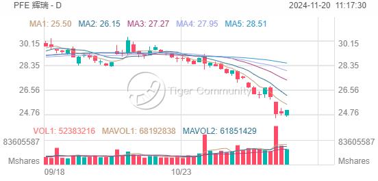 辉瑞:2024年以来,辉瑞的股价下跌了超过13%,也同样面临连续第三年下滑。LSEG数据显示,分析师对其评级多为“持有”,但华尔街的平均目标价预计其未来12个月可能上涨约29%。