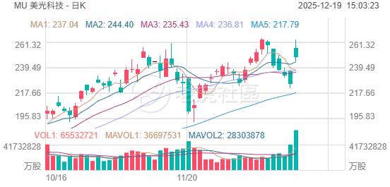 摩根士丹利重申美光为首选股,并将目标价上调至350美元,隐含约38%的上行空间。