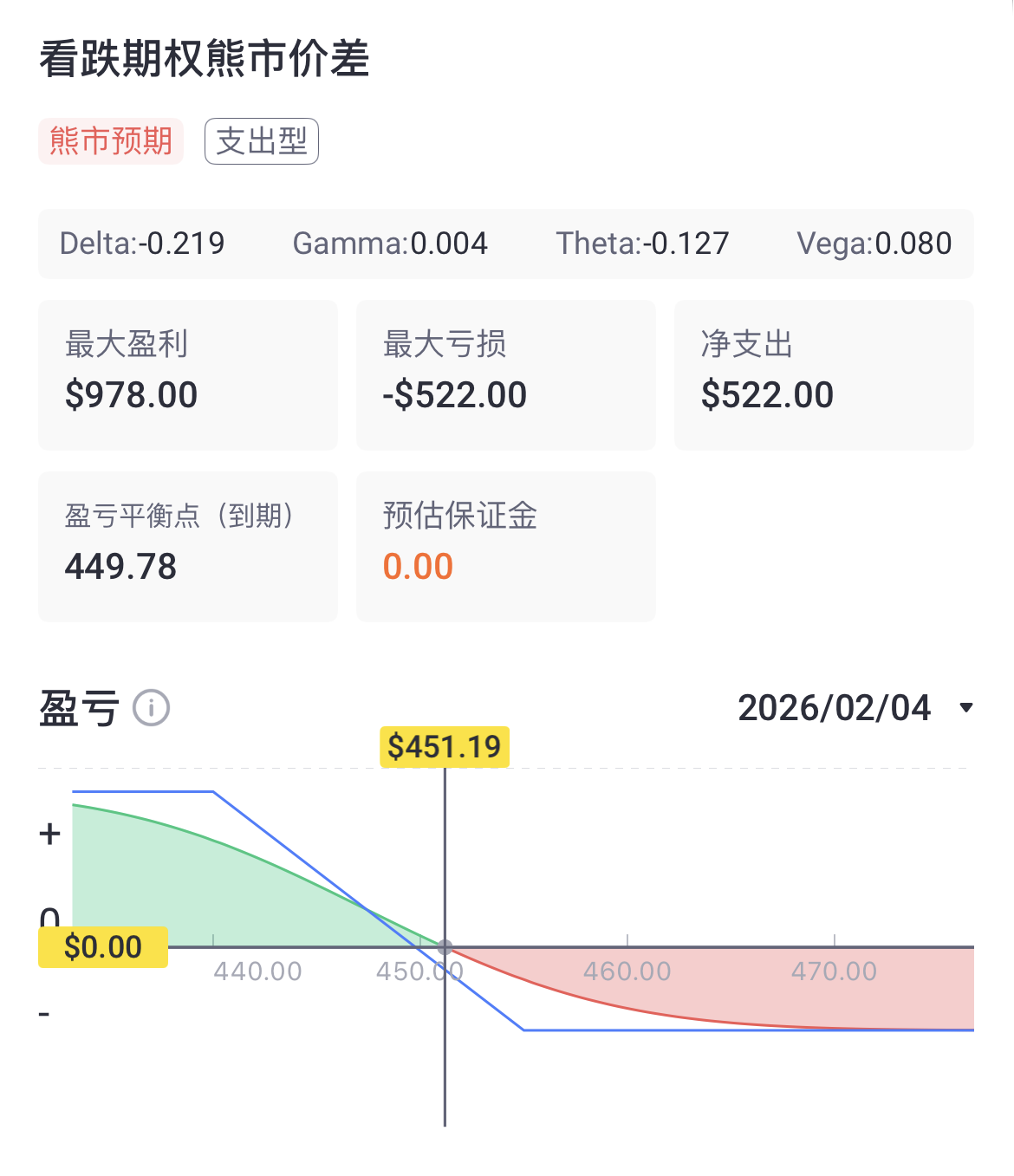 策略 B — 熊市看跌价差(Bear Put Spread)
