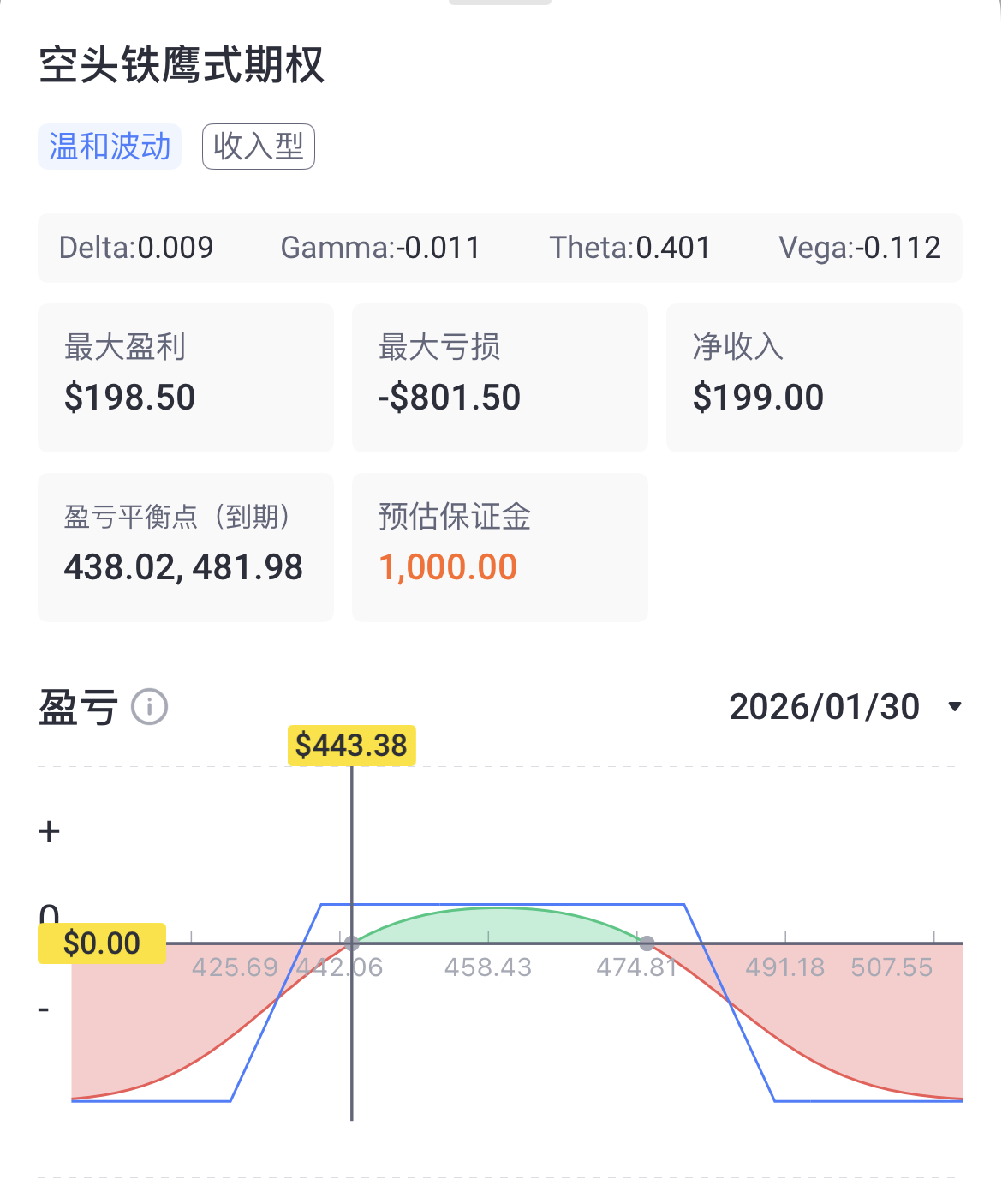 $GLD 鐵鷹式期權 260130 430P/440P/480C/490C$