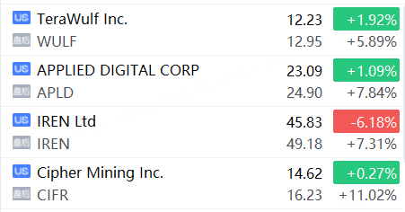 11月20日,加密矿企概念股盘后全线大涨,