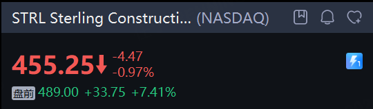 Sterling Construction Company In 盘前涨超7%。公司报告了超预期的第四季度业绩,2026财年的每股收益指引也高于预期。