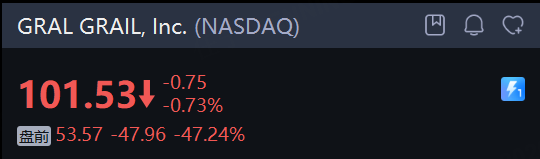 GRAIL, Inc. 盘前暴跌超47%。公司发布的第四季度财报显示净亏损为9920万美元,较上一季度有所增加。同时,公司宣布其关键的多种癌症早期检测试验Galleri未能达到主要研究目标。