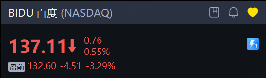 中概股方面,百度盘前跌超3%,哔哩哔哩跌超4%,阿里巴巴跌近2%,小鹏汽车跌1.8%,京东跌1.4%。