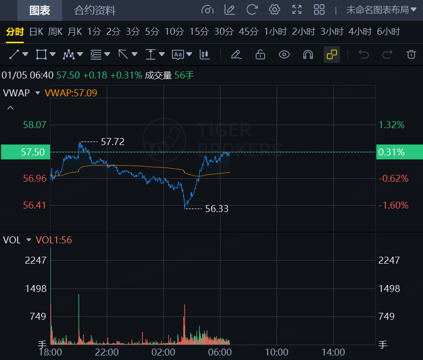 原油期货小幅拉升,截止发稿,WTI原油涨0.31%,报57.5美元/桶;布伦特原油涨0.16%,报60.95美元/桶。