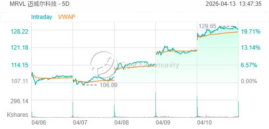 迈威尔的股价正逼近自 2025 年 1 月以来的首个收盘新高。本周一夜盘下跌1.45%,上周该股升幅近20%,创下自2024年12月以来的最大单周涨幅。尽管其股价走势并非一直沿着一条直线的人工智能叙事展开,但目前正重返历史高位。