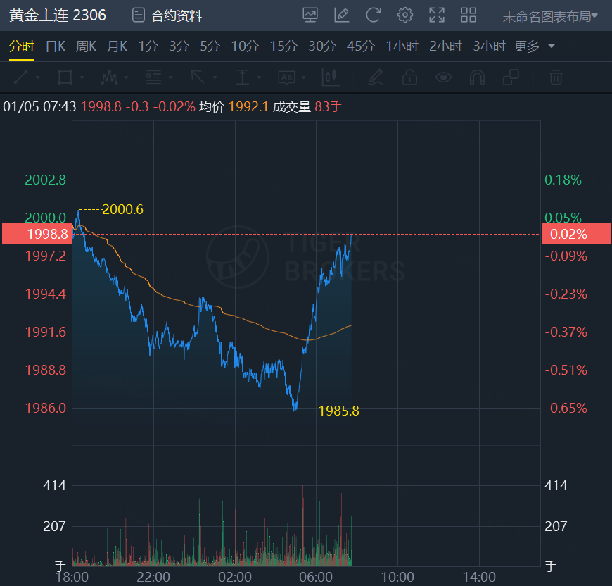 黄金期货跌幅收窄,截止发稿,跌0.02%,报1998.8美元/盎司。