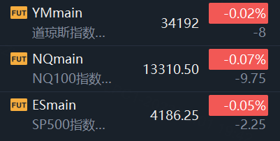5月1日,美股指期货弱势震荡,截止发稿,道指期货跌0.02%,纳指期货跌0.07%,标普500指数期货跌0.05%;