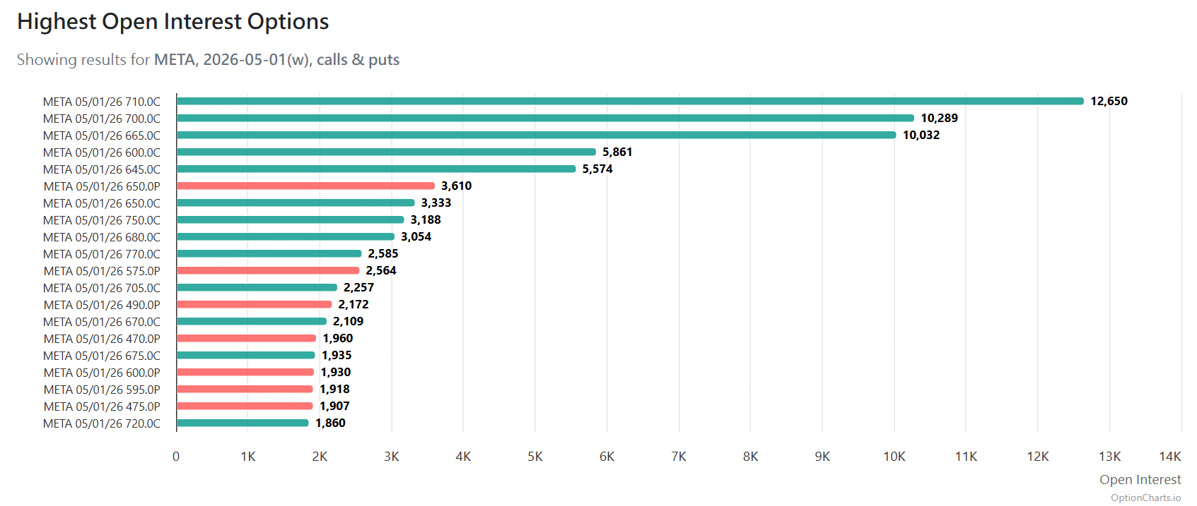 行权价710美元看涨期权:OI为 12,650 张。