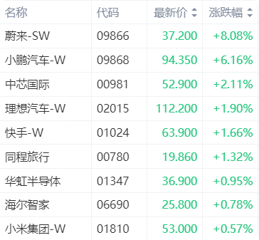 港股异动 | 恒生科技指数转涨,蔚来涨超8%