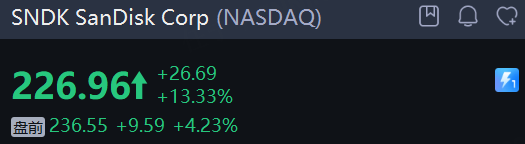 SanDisk Corp 盘前续涨超4%,公司将于周五纳入标普500指数。