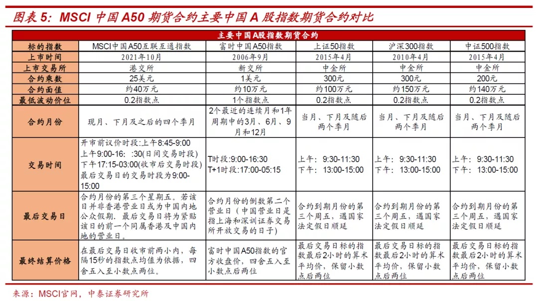 基于我国金融衍生品市场的发展与安全视角,就本次国内资本市场推出国际指数MSCI A50股指期货而言,我们认为,一方面,丰富了国内市场以中国特征股指为标的金融衍生产品,国内金融衍生品的丰富有利于定价权的稳定;另一方面,A股的近些年的发展出现越来越“独立化”的特征,为国际投资者参与中国资本市场提供了风险管理工具,可以使跨国资本更安全放心地长期投资A股市场,从而加速推动金融衍生品市场的国际化;一定程度上减少短期资本跨境流动及海外风险传导,亦对人民币汇率市场稳定有积极的意义。