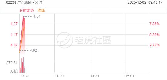 12月2日,广汽集团盘初大涨逾9%!摩根士丹利称该股目前仍被低估,给予增持评级。