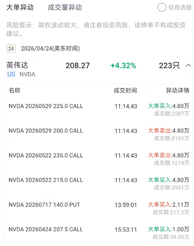 个股期权成交:英特尔暴涨,认购合约集体飙升