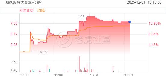 港股有色金属板块尾盘持续强势!稀美资源涨超13%,中国黄金国际、五矿资源涨超11%