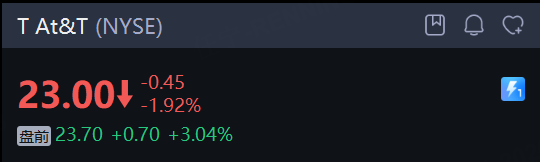 At&T 涨超3%,第四季度营收335亿美元,超出市场预期。同时,AT&T对2026年调整后每股收益给出了2.25美元至2.35美元的指引,高于市场预估的2.23美元,展现对未来盈利能力的信心。