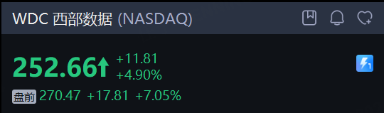 存储概念股盘前普涨, 希捷科技 涨超9%,创历史新高。2026财年第二财季营收28.3亿美元,同比增长22%,超过预期;调整后每股收益3.11美元,超过预期;预计第三季度营收28亿-30亿美元,超过预期。同时, 西部数据 涨超7%,创历史新高。 美光科技 涨4%,创新高。 SanDisk Corp 涨超6%。