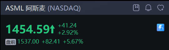 阿斯麦 涨超5%,创历史新高。四季度订单几乎翻倍,上调2026年增长指引。CEO称,2026 年将是阿斯麦公司的又一个增长之年。