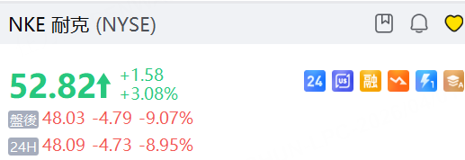 4月1日周三, 耐克 绩后夜盘跌近9%,第三财季业绩超预期,但预计第四财季销售将出现下滑。