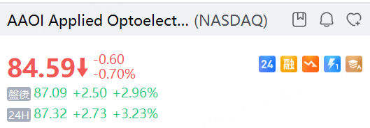 光通信、存储概念延续涨势,闪迪夜盘升逾2%、 Applied Optoelectronics Inc. 升逾3%, 美光科技升逾1%, Lumentum Holdings Inc. 升逾2%。