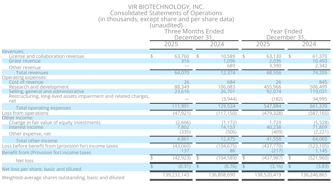 根据协议,Vir Biotechnology将获得3.35亿美元的预付款和近期付款,包括2.4亿美元现金、以50%溢价进行的7500万美元股权投资,以及2000万美元的近期里程碑付款。该公司有资格获得最多13.7亿美元的额外开发、监管和销售里程碑付款,以及美国以外销售的分级两位数特许权使用费。