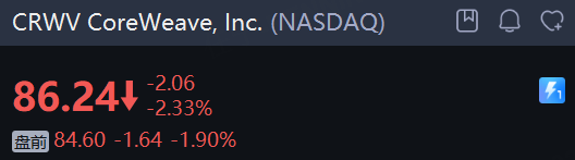 盘前跌近2%。消息面上,CoreWeave将可转换优先票据的发行规模由原先的20亿美元扩大至22.5亿美元。