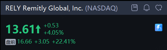 Remitly Global, Inc. 暴涨超22%。公司四季度收入达到4.422亿美元,高于FactSet分析师一致预期的4.274亿美元。