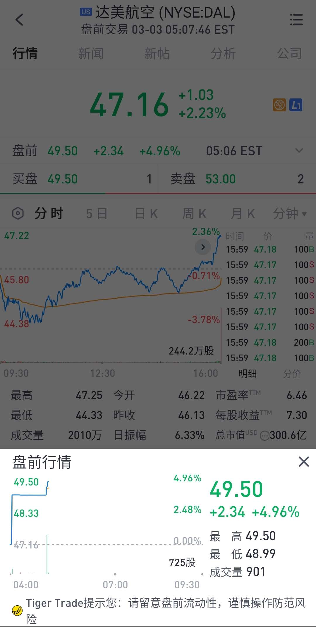 3月3日,达美航空$(DAL)$盘前涨近5%,巴菲特斥资约4530万美元增持。