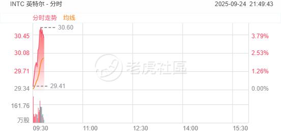 盘初快速拉升涨超4%。市场消息:英特尔发布一份聚焦人工智能的简报,内容涉及与Trust Stamp的合作事宜。