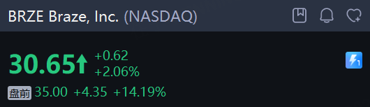 客户互动平台提供商Braze盘前大涨超14%,第三季度收入为1.91亿美元,超过分析师预估的1.84亿美元,同比增长25.5%。公司现预计全年收入为7.305-7.315亿美元,高于此前市场共识的7.18亿美元。公司还将调整后每股收益预期上调至0.42-0.43美元,相比分析师预期的0.42美元。