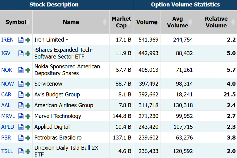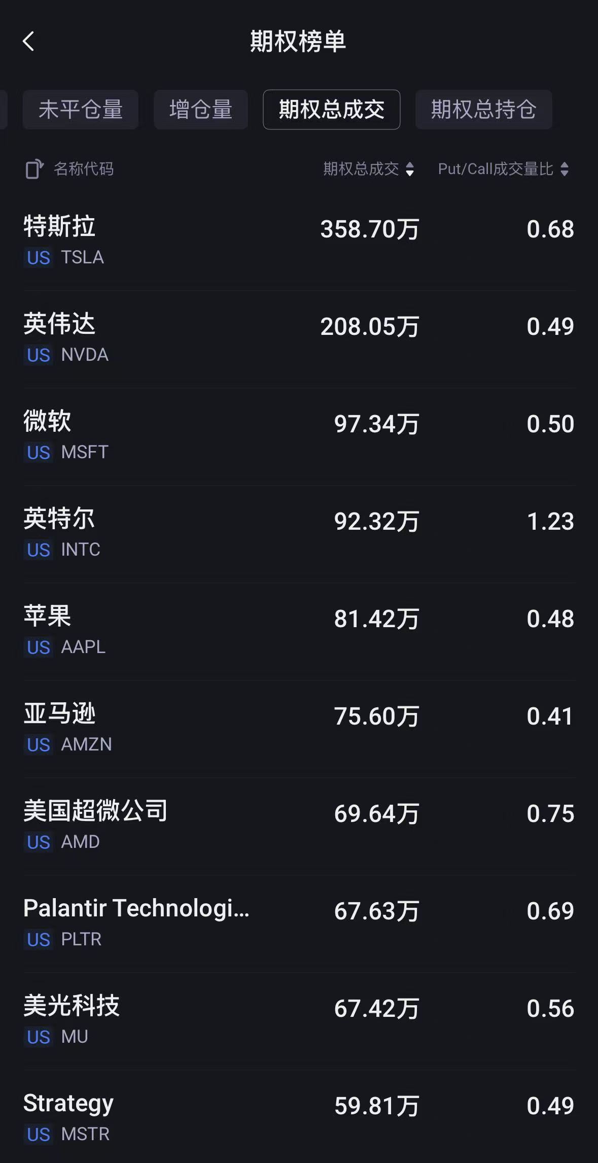 周四,期权市场总成交量6356.48万张合约,高于90日均量;特斯拉当日成交358.7万张,期权多空博弈激烈;诺基亚当日成交40.5万张,较90日均量放大近6倍,看涨期权占比攀升至84.1%>>