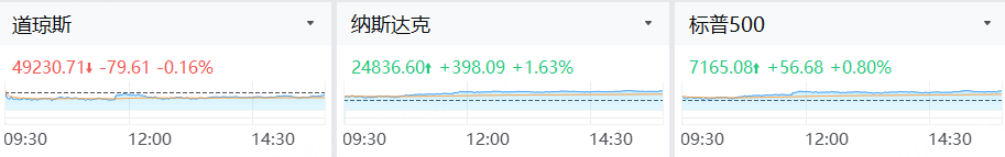 周五,美股走势分化,纳斯达克指数上涨1.63%,标普500指数上涨0.80%,道琼斯指数下跌0.16%。
