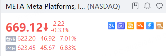 Meta Q1营收增长33%小幅超预期,上调全年资本开支至最高1450亿美元,股价夜盘大跌6%。