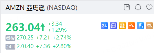 亚马逊Q1AWS收入增速近两年最高,资本支出超预期,股价夜盘涨超2%。