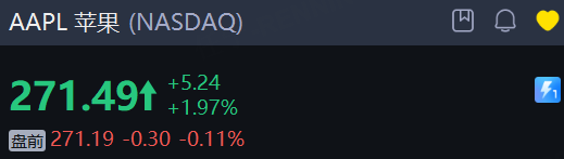 大型科技股盘前涨幅缩小,苹果转跌。截至发稿, 谷歌 涨超2%, 特斯拉 涨1.6%, 英伟达 、亚马逊、Meta涨近1%,微软涨0.5%,苹果由涨转跌。
