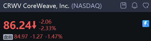 CoreWeave, Inc. 跌超1%。消息面上,CoreWeave将可转换优先票据的发行规模由原先的20亿美元扩大至22.5亿美元。