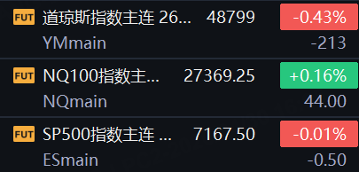4月30日,美股三大股指期货涨跌不一,截止发稿,道指期货跌0.43%,纳指期货涨0.16%,标普500指数期货跌0.01%。