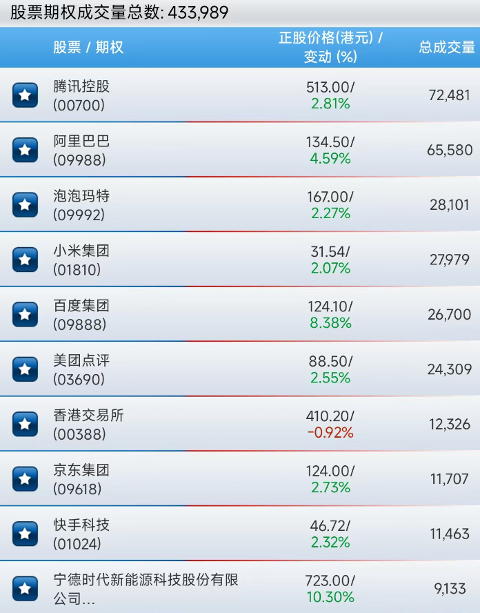 上午,股票期权成交433989张合约。腾讯、阿里巴巴、泡泡玛特位居个股成交的前三位。