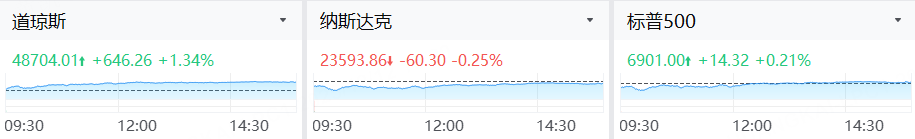 周四(12月11日),美股三大指数涨跌不一,截止收盘,道琼斯指数涨1.34%,纳斯达克综合指数跌0.25%,标普500指数涨0.21%。