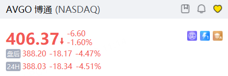 博通隔夜下跌1.6%,盘后续跌超4%。期权合约成交53.4万张,较90日均量放大2.1倍。12月12日到期的360美元的行权看跌期权交易量特别高,共有14,151份合约交易。 $AVGO 20251212 360.0 PUT$
