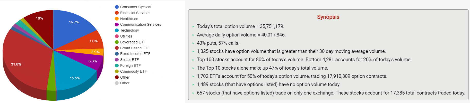 隔夜,期权市场总成交量达35,751,179张合约,其中,看涨期权占比57%。